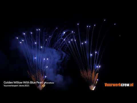 Wunderschönes Verbundfeuerwerk mit dunklen Brokat-Feuertöpfen und farbintensiven dunkelblauen Brillantkometen. Gefächert, breit ca.20sek