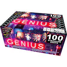 Das Verbundfeuerwerk "Genius" ist eine 100-Schuss-Batterie mit einem Kaliber von 25 mm, die sowohl mit geradem (I-Shape) als auch gefächertem (Fächer-Shape) Abschussmuster arbeitet, um den Himmel großflächig und dynamisch zu bespielen.